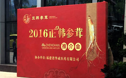 正韓集團2016參茸推薦會與福建華成醫藥有限公司共同舉辦,雙方表示此次會議取得了圓滿成功 會議主席臺 正韓參茸訂貨區 來賓簽到處 訂貨來賓主席餐位.....